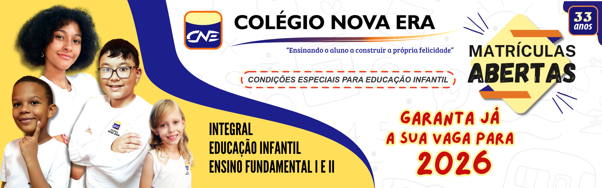 Fundado por um grupo de educadores idealistas, o Colégio Nova Era vem há mais de 30 anos, contribuindo para o aprimoramento do processo educacional brasileiro através de um viés humanista e focado na formação de indivíduos capazes de fazer a diferença na sociedade.